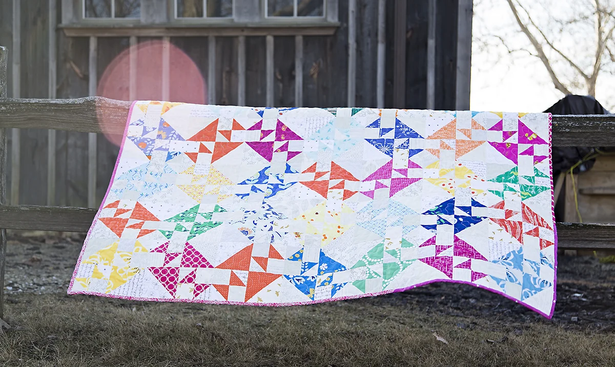 I really love the low volume scrappy background paired with the bright colors. Cutting out the fabrics when I go this scrappy does take longer, but I think the effort is very well worth it in the end.